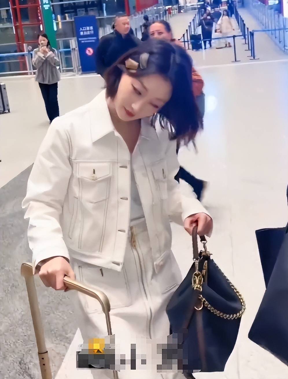 听到路人的称赞后,她下意识做出歪头、屈膝的俏皮动作回应,让大家看到了她娇憨的一面。